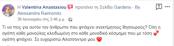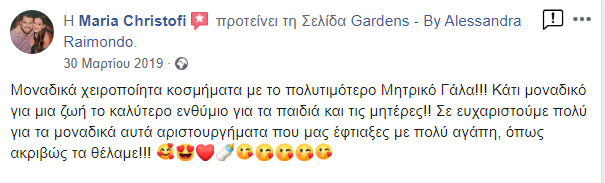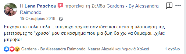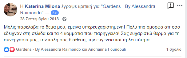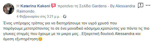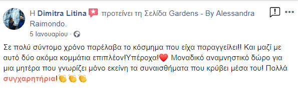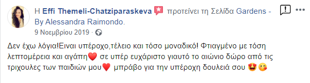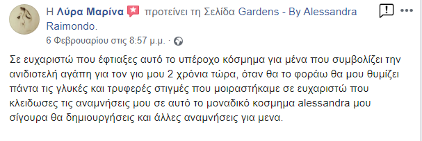 Η ιδέα του Gardens γεννήθηκε από την προσωπική μου ανάγκη να κρατήσω ζωντανές αυτές τις ξεχωριστές στιγμές της μητρότητας. Με την υποστήριξη του συζύγου μου και έπειτα από αμέτρητες ώρες δημιουργίας στο σπίτι, το 2017 κάναμε το όνειρό μας πραγματικότητα, δημιουργώντας έναν ξεχωριστό χώρο στο Παγκράτι Αττικής. Σήμερα, το Gardens είναι ένα νόμιμο κατάστημα και εργαστήριο κατασκευής αναμνηστικών κοσμημάτων, αφιερωμένο σε όσους θέλουν να κρατήσουν ζωντανές τις πιο όμορφες στιγμές της ζωής τους.